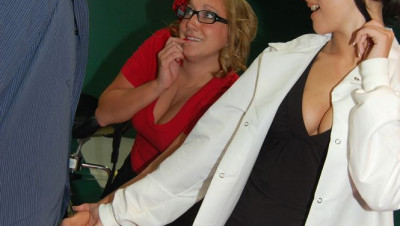 When nurse Alexis and her assistant take a look at a young patients cock, they become excited and decide to start coaxing him to jack off in front of them. The horny teens get excited as they reach out and help him beat his meat. The two are finally blasted with jizz in their faces and beg for more as ropes of cum fly out all over them.