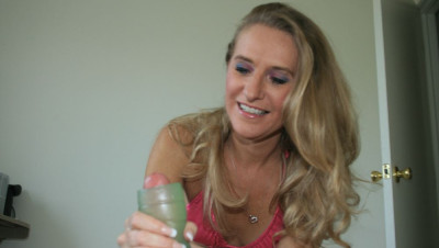 Mrs. James is in a hurry when she walks in on neighbor Jimmy playing with his new toy. "OMG!...Jimmy let me try it" Mrs. James has no time to spare, so she quickly jerks the stud off with a squishy until his huge cock explodes. "Now c'mon, get outta here, my husband is on his way!"