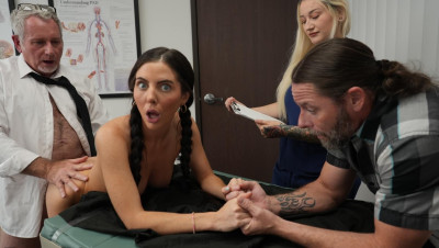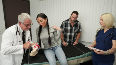 Theodora Day's husband has low sperm count so this lovely couple visit the sperm clinic. What those two lovebirds didn't know is that the procedure would take place immediately. Mr Crew is gonna fuck that hot brunette right here, right now, while her husband is watching. Theodora loves that mature guy's dick and she can't hide!