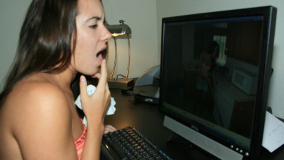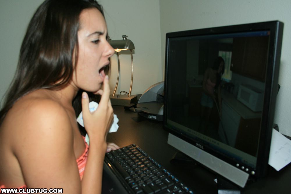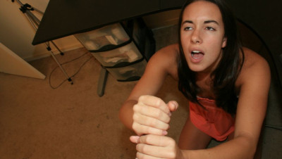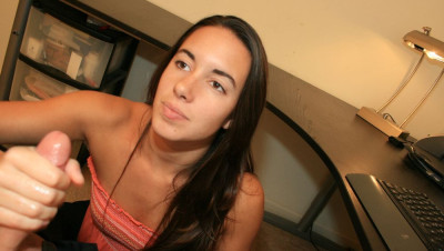Mr. Carlsons wife hires their neighbor Jennifer to help clean. Jennifer accidentally spots photos of her on his computer. "Mr. Carlson...um, how did you get photos of me?" She then sees a photo of Mr. Carlsons cock. "Mr. Carlson...I think I can help you get better photos" The cum hungry teen begins to jerk off Mr. Carlson as he snaps away his camera.