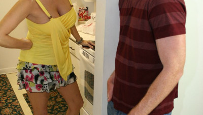 When Mom next door Dallas invites Joey over for dinner, the young kid is running a little late. But Dallas is furious and decides to teach him a lesson he wont soon forget. The mom lathers his cock up with cooking oil and jerks him off all over her face.