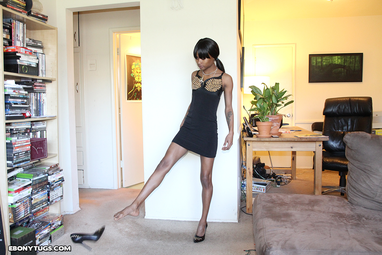 Cute Trina is ready to go out but Billy, her boyfriend, is horny and he is looking for some pleasure. He asks for a release, so the ebony cutie gets naked and gives him an awesome handjob. She seems to enjoy it, especially when he explodes with jizz in her sweet face.
