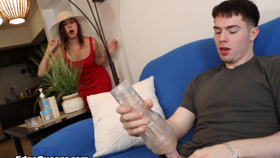 Fact: horny guys do embarrassing things. Sometimes intentionally. Like Rick, the hung stud finds a fleshlgiht and starts pumping himself off. When Lana Blade walks in and confronts him he gets more than he asks for. An intense edge session ensues and Lana wont let him cum until her is fully at the brink and his ball are swollen.