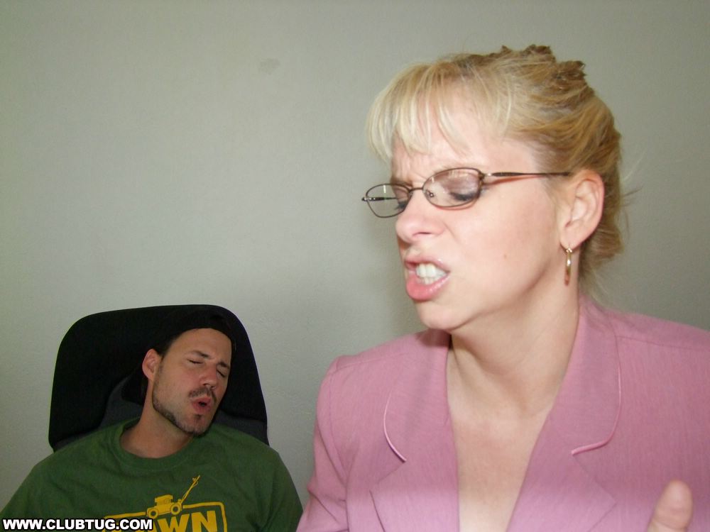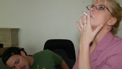 Ricky cant help but jerk his cock while looking at sexy photos of his boss. When he is caught with is cock out his boss is furious. She scolds Ricky while smoking. She jacks his cock while smoking and using his cock as an ashtray until she makes him explode all over her face. "You just jerked your way out of this job man!"
