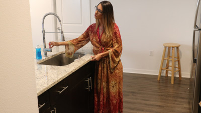 Dava Foxxx knew her lovely step-brother would come back for more, but she wasn't expect that to happen so soon. The young man grabs her while she is making breakfast and fucks her tight pussy in the kitchen of her house. “OMG step-bro! This is the best morning fuck I've ever had!”