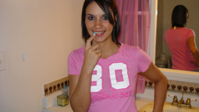 Timid teen Sandy is primping her hair when Mr. Carlson spots her and begins stroking his cock. The curious teen pretends she doesn't notice him, but lets him pump it while a surge rushes to her pussy. The timid teen cant take the excitement any longer and milks his cock all over her face in a massive facial.