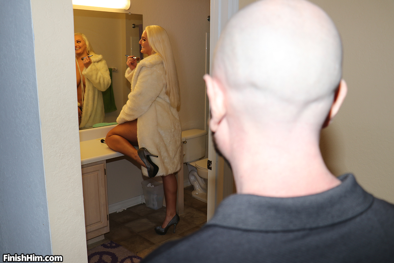 Macy Cartel is late and now she has to give her angry boyfriend a payback. Fortunately the naughty blonde babe knows exactly how to do that, so she grabs that dude's big-sized dick and jerks it really slowly until he releases a big cumshot for her. Se handjobs his cock in her fur coat!
