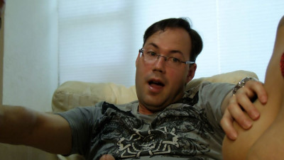 William secretly watches his three neighbors playing around, and starts jacking his cock. When the three babes spot him they immediately scold him and yell at him. But the horny trio notice how large his cock looks, and decide to have some fun. While Billy continues to stroke his cock, the three babes play with their pussy's and talk dirty, coaxing him to explode. As he is just about to cum, all three quickly rush to take a Williams jizz all over their faces..