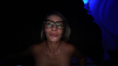 Talk about an epic cum facial. The avalanche of cum shot at MILF newcomer Mandy Rhea is so overwhelming that she's barely able to compose a proper reaction to it. After a deep fuck session she gets a messy cum facial across her eye glasses in this episode.