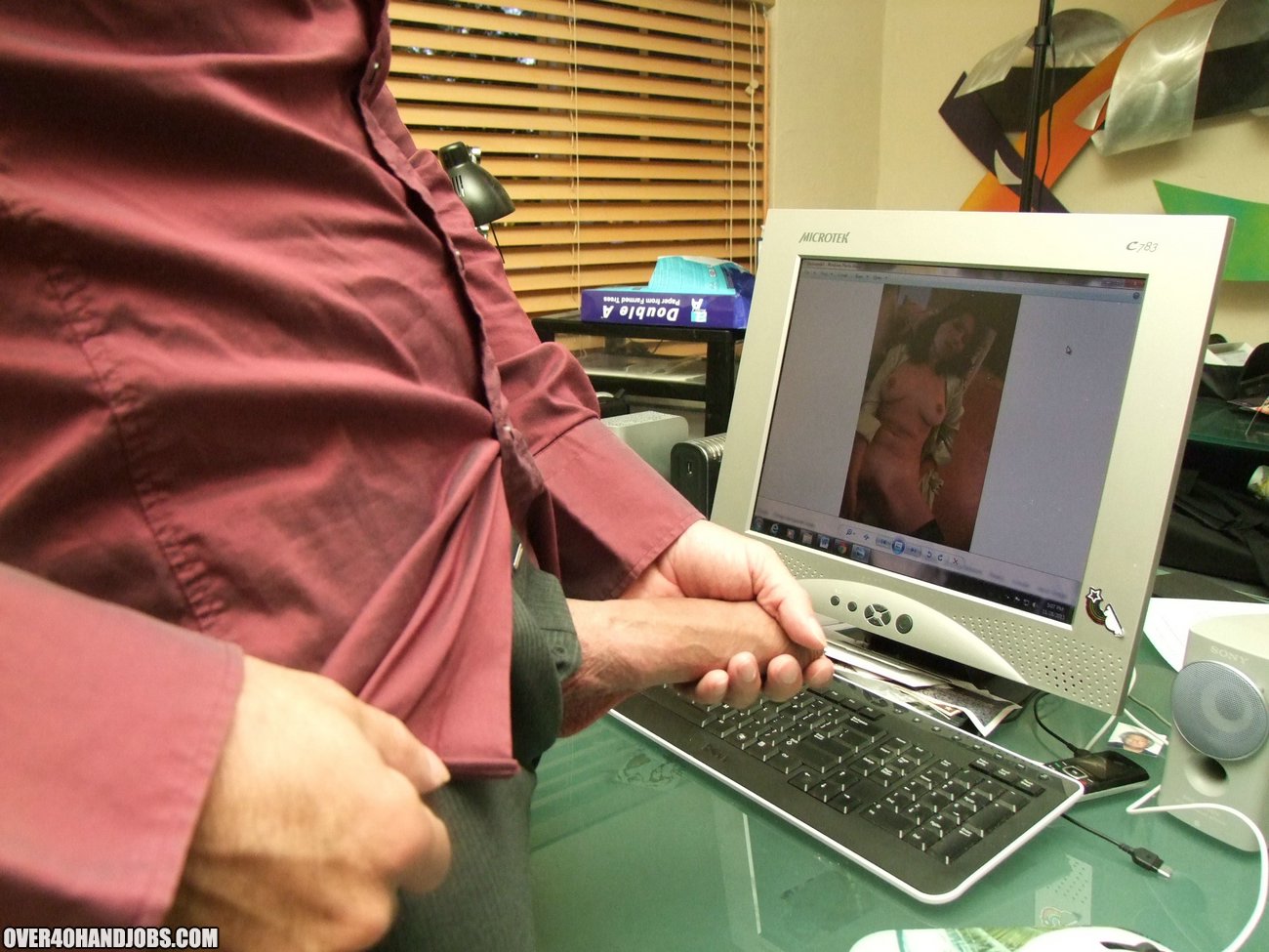 Persia Minor and Tatiana Petrova catch John jerking his rod. The two horny housewives are so turned on, they decide to help him jerk off. They start tweaking their twats together as Johnny finishes himself off.
