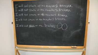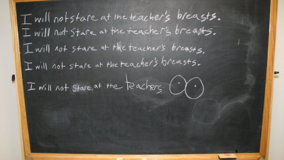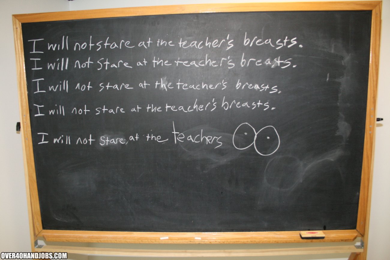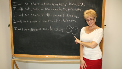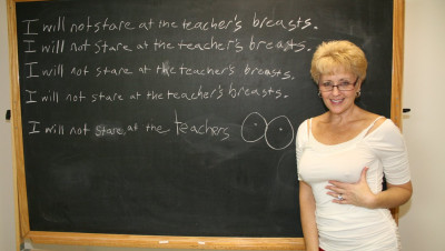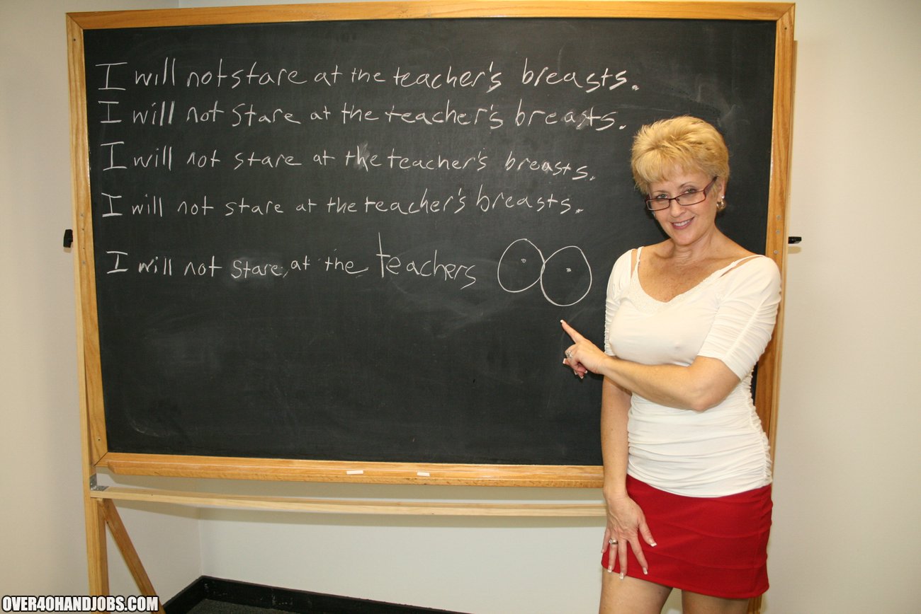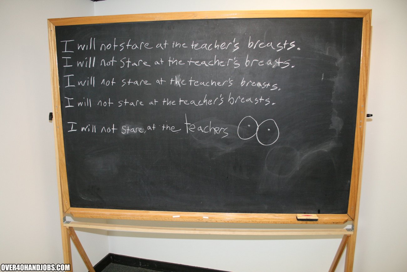 Young Jonny has misbehaved in class again, this time staring at Mrs. Tracy's gigantic juggs. The perverted teacher makes him write on the board, but when this punishemnt doesnt work, the jerks his cock only to bring him to the brink of orgasm them slapping him on the head.