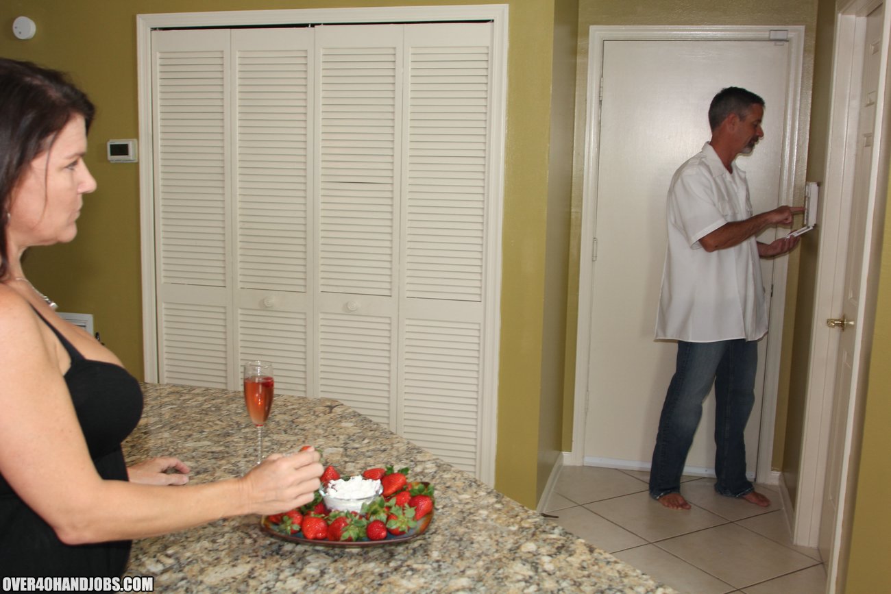 Sultry and slutty mif Sadie Micheals is home alone playing with her pussy when the security systems installer shows up unannounced. The horny milf decides to take matters into hr own hands and milks his massive dick.
