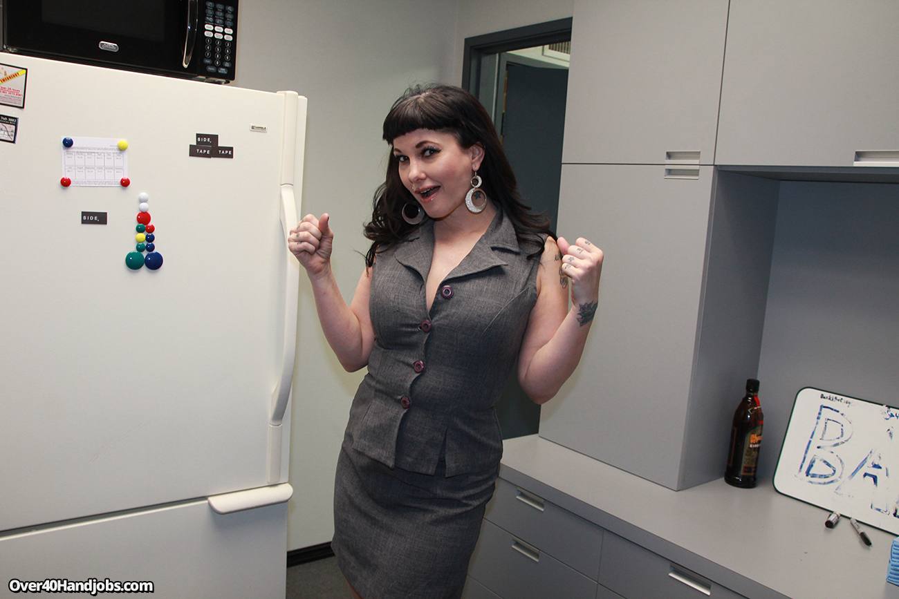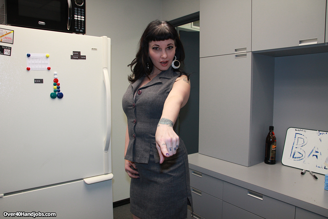 Some women opt for botox or even plastic surgery to retain that youthful appearance but not Carrie Ann. The dark haired mature babe knows an easier way to looking young that doesn't involve any pain and is a ton of fun. That easier alternative involves her stripping naked and jerking Chucks cock at his work place but that is something this desperate older woman is willing to do to get her hands on his sperm.