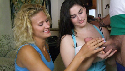 Teens JC and Chloe catch Mr. Johnson beating his meat. The perverted old man begs them to jerk it, but the two teens think its gross. After some pleading, the teens finally agree to jerk his cock, only if he can nut within two minutes. The two teens stroke together while Mr. Johnson explodes his goo all over them.