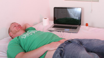 Brad is back at home after a hard day at work. The only thing that can help him relax is masturbating. The exhausted dude is lying on his bed touching his erected boner, when suddenly he falls. And then, his ultimate fantasy seems to turn into reality. Caroline Pierce, his dreaming handjob girl comes into the room and takes control of his big-sized boner. The redhead milf strokes his dick and makes him release all the daily stress as well as his cumload.