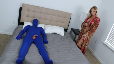 Dani Dare is a horny slut who loves nothing more than playing with big hard cocks. Today this sexy lady finds a mystery man lying on her bed and is not gonna let him go before she has some fun with him. Mrs Dare jerks that fat cock while playing with her vibrator at the same time until she makes that man release a big cumshot.