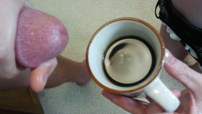 Joey is pissed. Her gf Kali fucked up his coffee again by forgetting thecream. So the perverted teen has a better idea and wants to cream of her own. Kali strokes his massive cock, but when he is about to explode she makes him spurt in the coffee cup