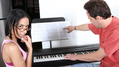 Tia is is not interested in this music lesson, and she does not have any money with her either. The teen slut has to pay her teacher today, and not having any cash in her pockets, she knows exactly what to do. The petite girl gets naked and sucks his big-sized boner, before fucking him for good. Her tight pussy gets really wet, while the mature man makes her cum again and again. Finally, he releases all his load in her horny face.