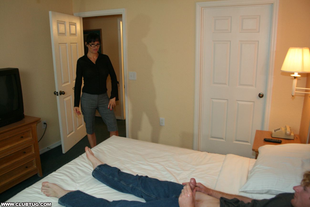 Milf Angie Niore scolds Joey for not writing his class paper, but Joey has better things in mind, like jerking off his large cock. When Joey starts pulling his pud, the horny milf gets curious and starts jerking it for him.
