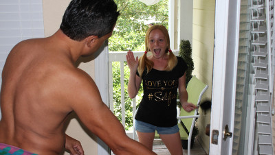 Sometimes, when you knock on your neighbor's door asking for some sugar, you might end up with a huge cock fucking your pussy. That's what happened to Alyssa Hart. The teen babe hasn't seen such a big-sized boner, and she isn't going to let it get away. Alyssa fucks her neighbor's dick until he releases all his load on her ass.