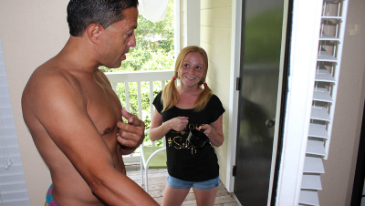 Sometimes, when you knock on your neighbor's door asking for some sugar, you might end up with a huge cock fucking your pussy. That's what happened to Alyssa Hart. The teen babe hasn't seen such a big-sized boner, and she isn't going to let it get away. Alyssa fucks her neighbor's dick until he releases all his load on her ass.