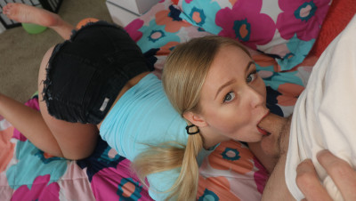 Super cute teen Natalia Queen turns 18 today and gets really surprised when her step-brother comes in with a birthday cake. The best news is that now she can have sex with him and she won't miss the chance! First, the beautiful blonde babe grabs that dude's dick and sucks it big time and then he fucks her tight pussy for good before exploding with cum in her cute face.