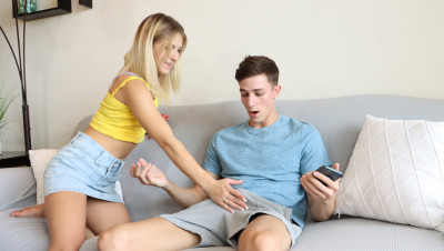 Emma Bugg is hanging out with her stepbrother Parker until she notices he has a hard on for her. As you can see this petite blonde babe is going to do something about that so she gets naked and immediately grabs his huge cock. Emma wants that dick inside her pussy and she is screaming out loud while that dude is fucking her hard.