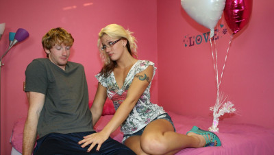 Cock-sured Billy loves spooling his gf on Valentines Day. Jc Simpson gets excited when she gets balloons for v-day. The teen decides to give his cock some relief by stroking him off with a wild handjob.