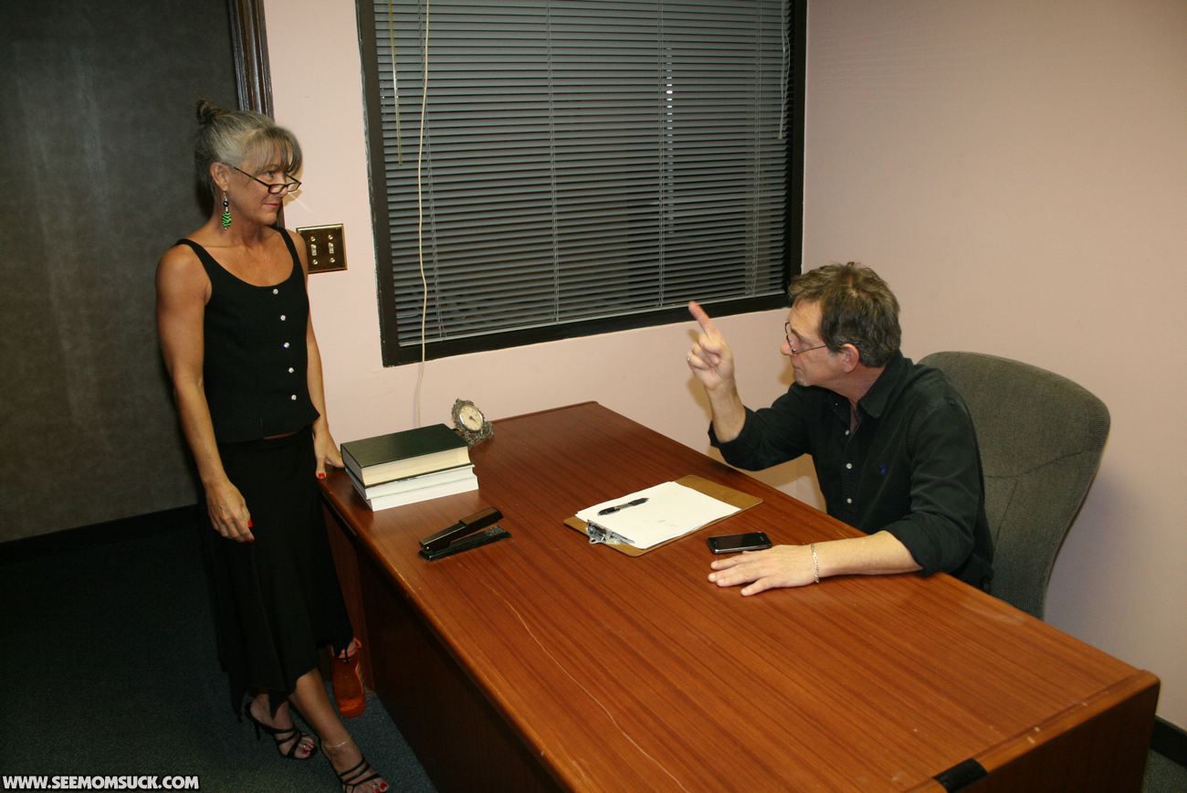 Mr. Johnson is having a bad day when he finds out his car is practically totaled. he knows his milf secretary Mrs. Ley will make him feel better as she gives him a sloppy bj with a massive facial.