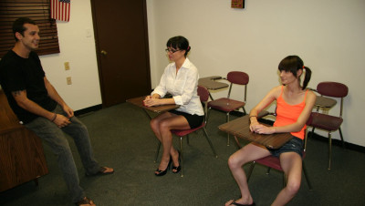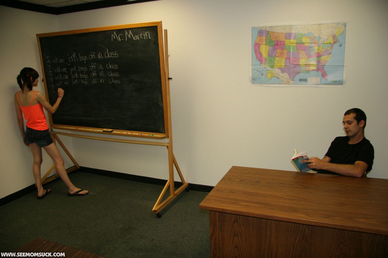 When teenage delinquent Chloe is busted for jerking off boys in class, her angry step mom Angie Noir is furious and tells her the only way to be punished is for the teen to watch as she sucks and slobbers on a giant dick, right in front of the teen. Chloe watches in disgust as Angie gets a huge facial.
