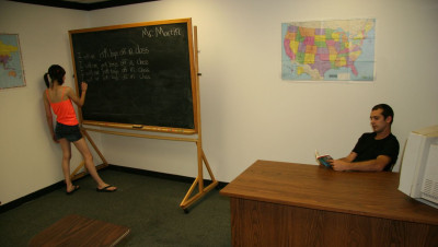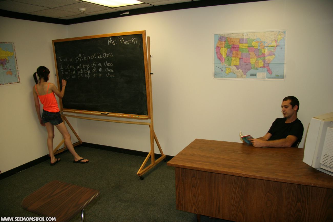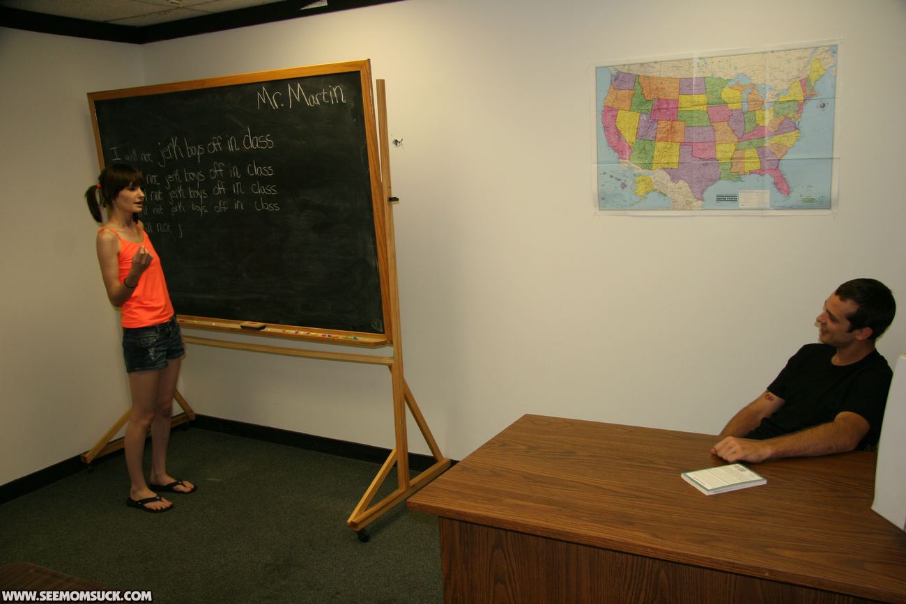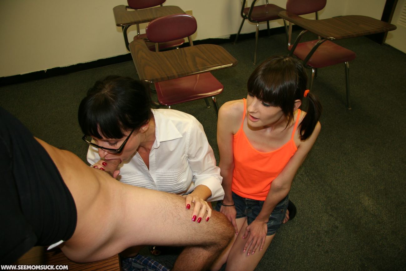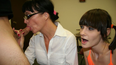 When teenage delinquent Chloe is busted for jerking off boys in class, her angry step mom Angie Noir is furious and tells her the only way to be punished is for the teen to watch as she sucks and slobbers on a giant dick, right in front of the teen. Chloe watches in disgust as Angie gets a huge facial.