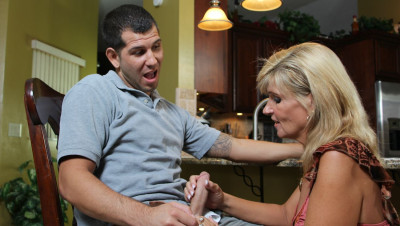 When Joey cant figure out his homework, Mrs. Crystal Jewels tries to help him. But poor Joey cant concentrate with his step moms tits hanging out. So the perverted milf says she'll suck his cock if it will help him stay focused, which works after Joey nuts all on her face.