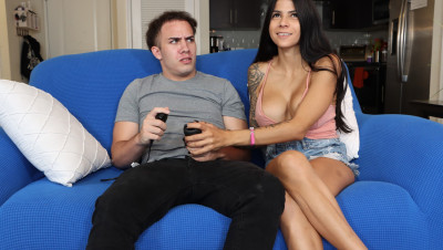 Sadie Pop tries to distract her step-brother while he is playing videogames and she knows the way: This sexy brunette starts to suck that guy's dick and things get even more weird when her mom comes in and joins the fun. The two ladies are determined to make him lose so they tag-team his erected cock giving him an amazing blowjob. “OMG girls, that's not fairâ€!