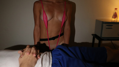 For massage therapist Kamren, teasing men is an extreme sport and she's so damn good at it. Micheal gets a full body sensual rub down and also gets his dick worked on. Kamren dishes out a great handjob with full relese in this latest ShadySpa episode!