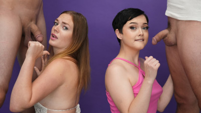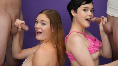 Blowjob challenge. That's the phrase of the day when teens Jade Valentine and Samantha Reigns dropped by the She Reacts studios. The two cute teens can barely contain their excitement as the compete to make the boys cum. Watch the full video to find out who has the best head game.