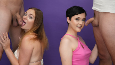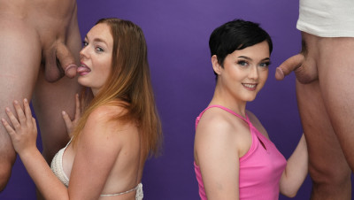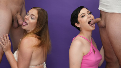 Blowjob challenge. That's the phrase of the day when teens Jade Valentine and Samantha Reigns dropped by the She Reacts studios. The two cute teens can barely contain their excitement as the compete to make the boys cum. Watch the full video to find out who has the best head game.