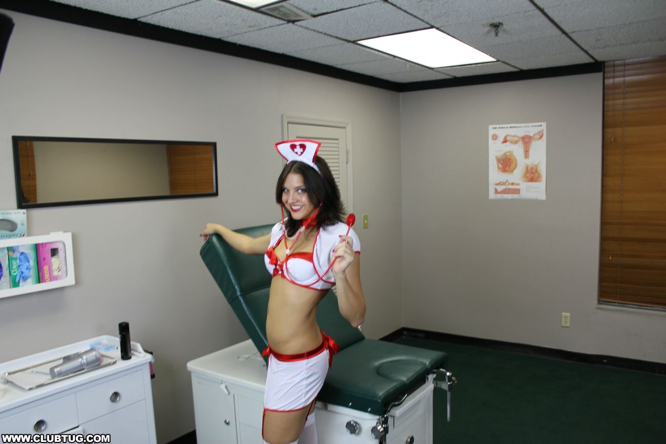 Mike visits the doctors office and ends up having the ultimate handjob fantasy when sexy teen nurse Sadie Holmes appears in a sexy nurse uniform and then strokes his throbbing dick with a fleshlight toy. Mike unloads almost instantly from her sweet hands and tight body.