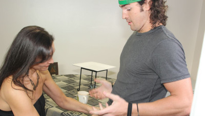 When poor Johnny cant concentrate at school, he tells his step mom he is having a problem with getting erections all the time. The perverted Raven LeChance tells him he should just "rub one out". Shocked at his cock size, Mrs. LeChance decides to jerk his cock for him instead, making him nut all on her face.
