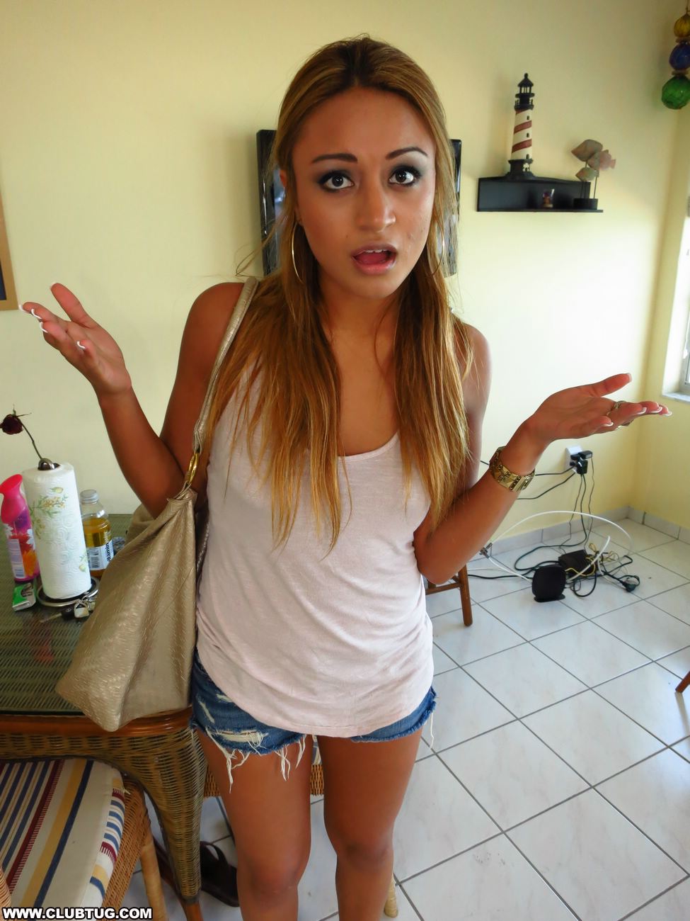When poor Mike cant find a job the he is stuck home playing video games all day. When bossy bitch Natalia Robles comes home she scolds him about his video game addiction, big time. But all he needs to do is whip out his monster cock and this bossy bitch turns into a Latina cum slut like no other.