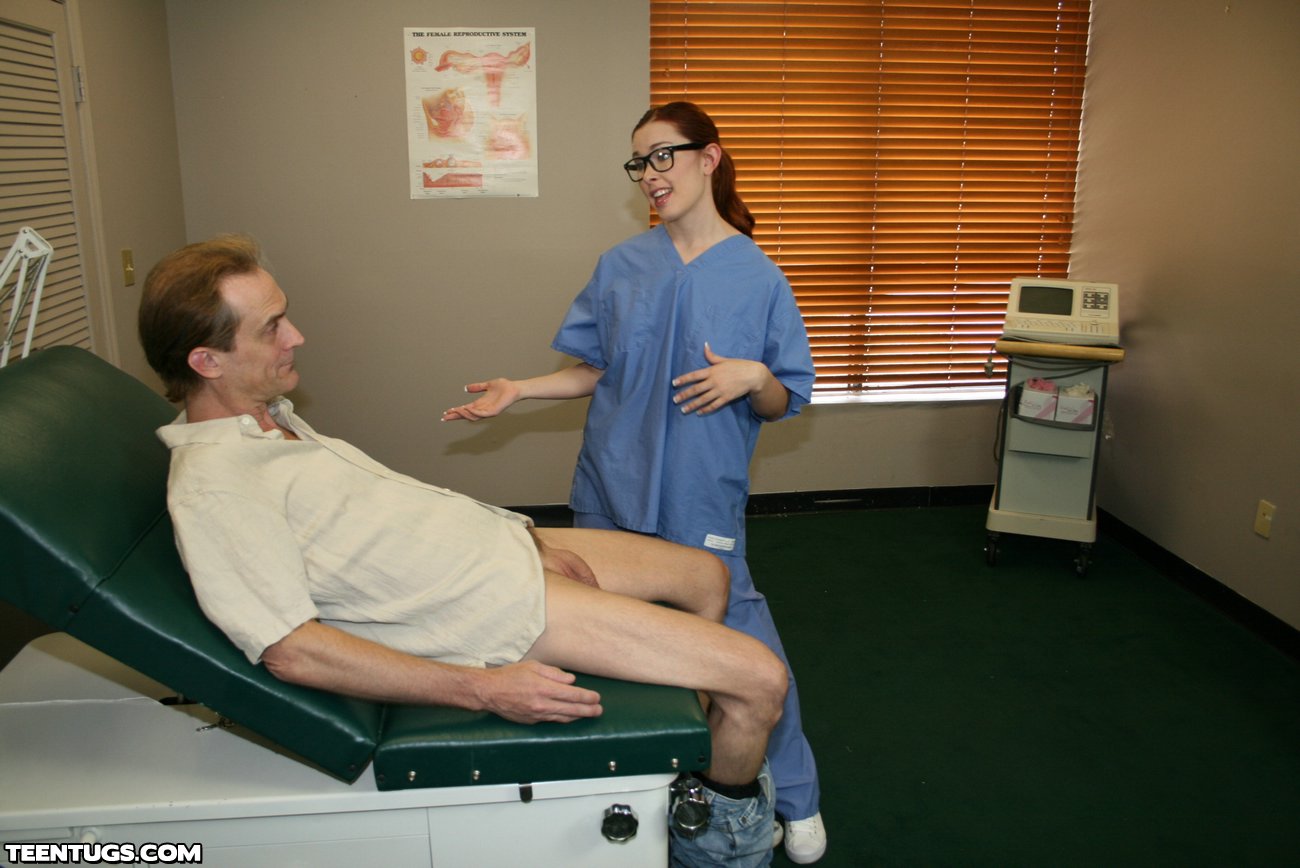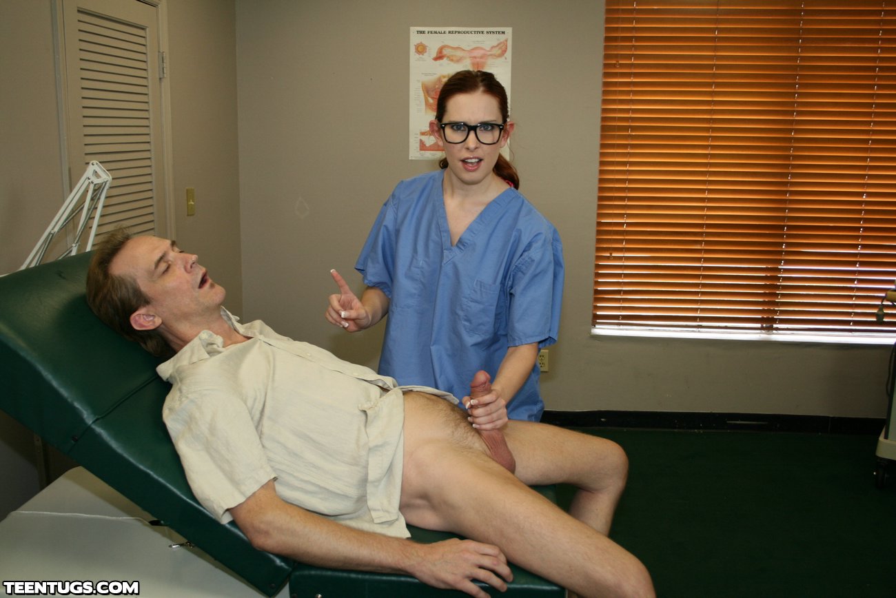 When Clint gets checked out for ED, he is amazed at the sexy nurse Melody in the doctors office. His cock gets immidiatly erect when she walks into the room. But too much blood rushing to his prick makes him pass out. Melody, loving the size of his cock decides to finish him off with a sexy nurse handjob.