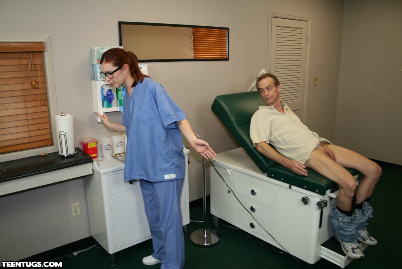 When Clint gets checked out for ED, he is amazed at the sexy nurse Melody in the doctors office. His cock gets immidiatly erect when she walks into the room. But too much blood rushing to his prick makes him pass out. Melody, loving the size of his cock decides to finish him off with a sexy nurse handjob.