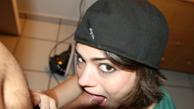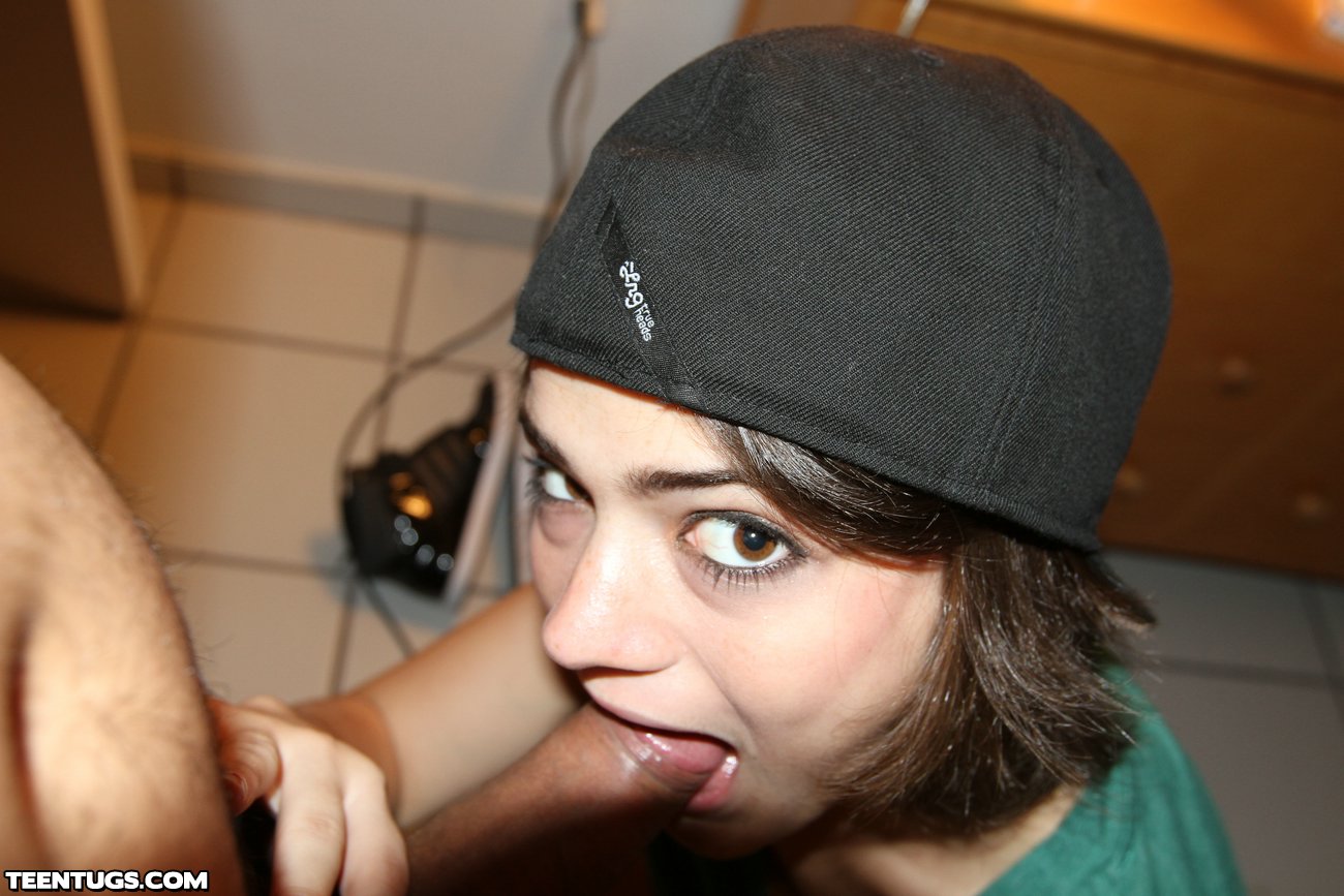 Sexy and petite teener Tristan meets Jimmy, the kid with the biggest dick in the neighborhood. When they meet he sports a massive boner in which Tristan needs to stroke to see his massive cum load. Ten Tristan jerks and spit shines his big shaft when he unleashed a gigantic cumload on her teen face.