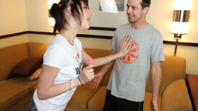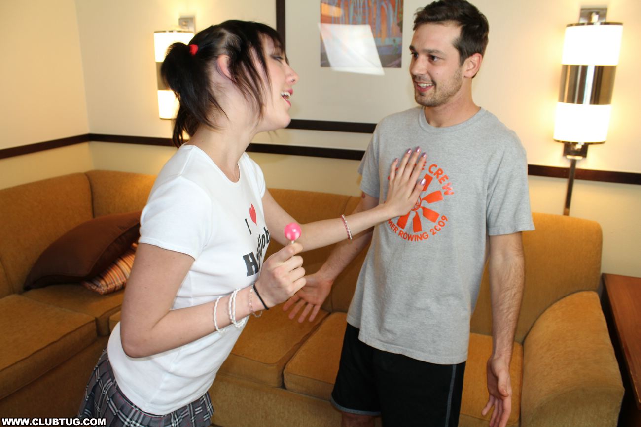 Joey is in for a big surprise when teen Mysti Moons walks in wearing her favorite t shirt. This horny cum slut loves to give wank jobs to complete strangers, and when she meets Joey and his big 8 inch dick, she milks him bone dry.