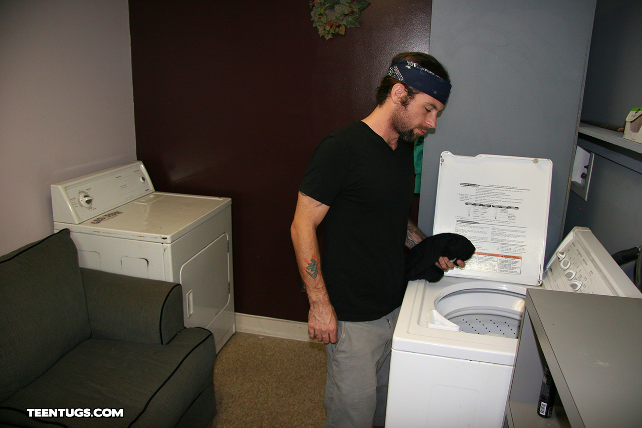 Horny college student Dakota Charms coaxes cum from some stranger in the laundry room. The slutty teen girl makes him to sit down and dominates his dick by jerking it hard until he squirts his semen.