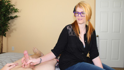 Victoria comes in her step-brother's room and finds him masturbating. The poor guy thinks he is in trouble now, but the horny teen gets turned on at the sight of his big dick. So she decides to give him a great handjob before her step-mother comes home. Victoria jerks him for good until he explodes with jizz.