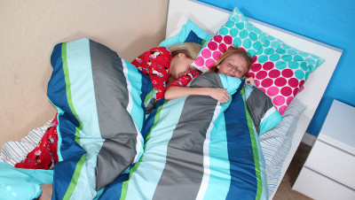 Teens Alyssa and Hope Harper have been punished for not waking up on time so uncle Joe decides to punish them by making them both jerk his big fat cock. The two tiny teen girls get into it and work together to make uncle Joe bust his nut all over himself.