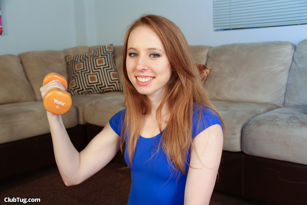 Knowing that cute Sofie is a fit girl, Mr Johnson asks her to help him workout. The sexy babe calls him at her place to show him some exercises, but the slutty teen has a new style workout in mind, which includes stroking Mr Johnson's cock. Sofie gets naked and jacks off his dick on the floor of her living room, until he releases his cumload on her hand.