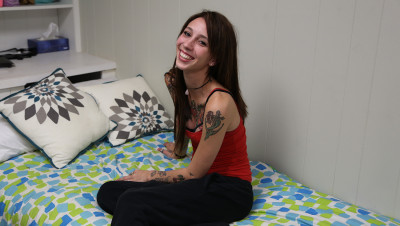 Tattooed teen delinquent Haven Rose gets busted for doing webcam shows in her room and her landlord is pissed. Since her pussy is already throbbing he pulls out his hard cock and the teen starts to tug on it hoping that making him spurt his load will make allow her to continue to do shows.