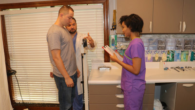John is in for his exam when the doc steps our for an emergency. Luckily Nurse Barnes is available to extract the needed samples. She pulls out his hard cock and milks him with latex gloves, stroking his hard cock until he accidentally explodes his semen, shooting his goo over his shirt. Nurse Jasmine believes shes has enough for a sample.