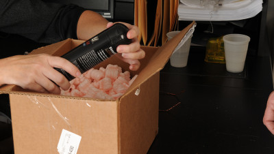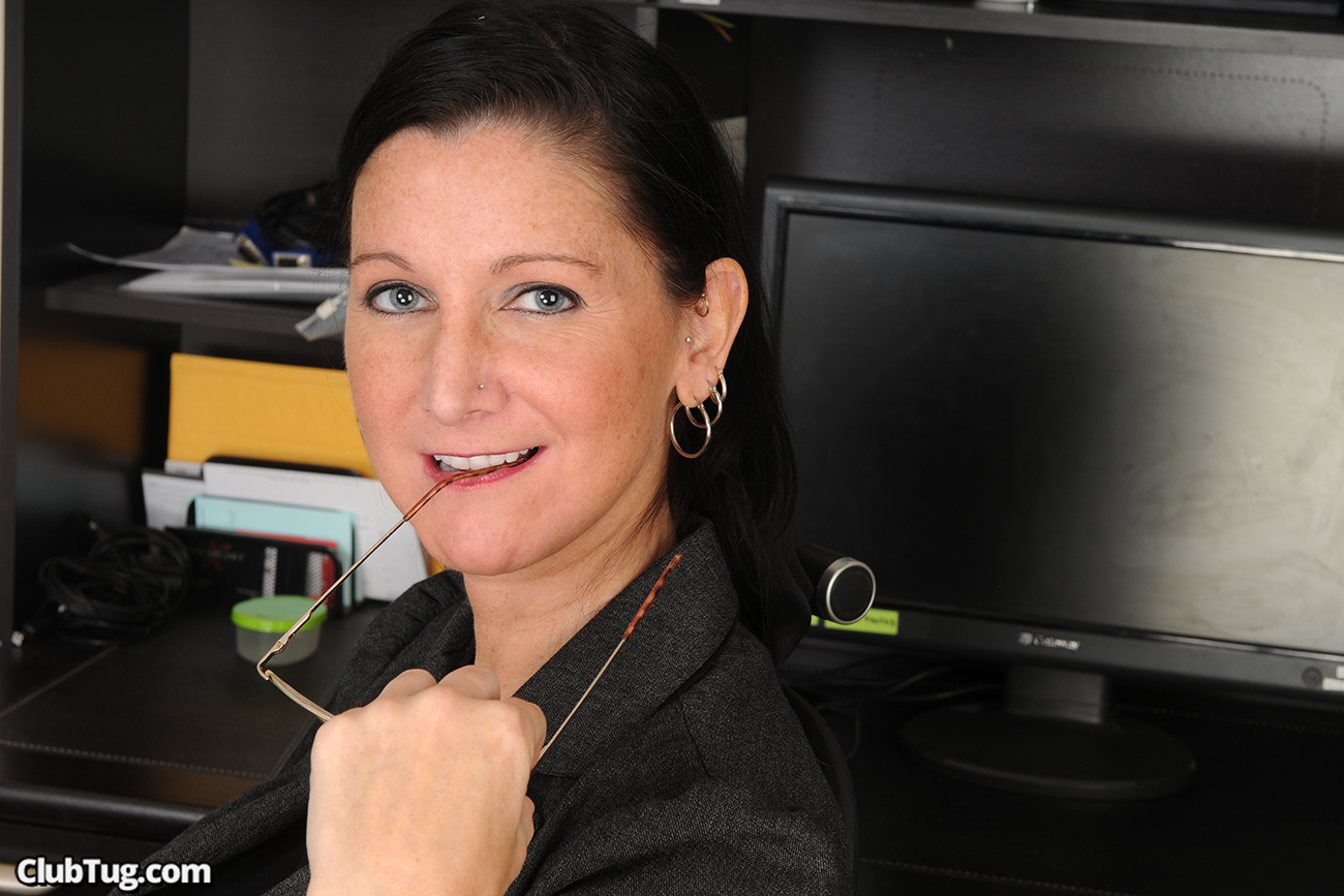 Kelly Greens package has finally arrived at her office. The naughty milf has ordered a lube. Kelly decides to make a live demonstration for him, so she takes her clothes off and uses her new lube to jerk his boner. She is sitting on her knees, giving him some great cock strokes, until she gets splattered with salty jizz.